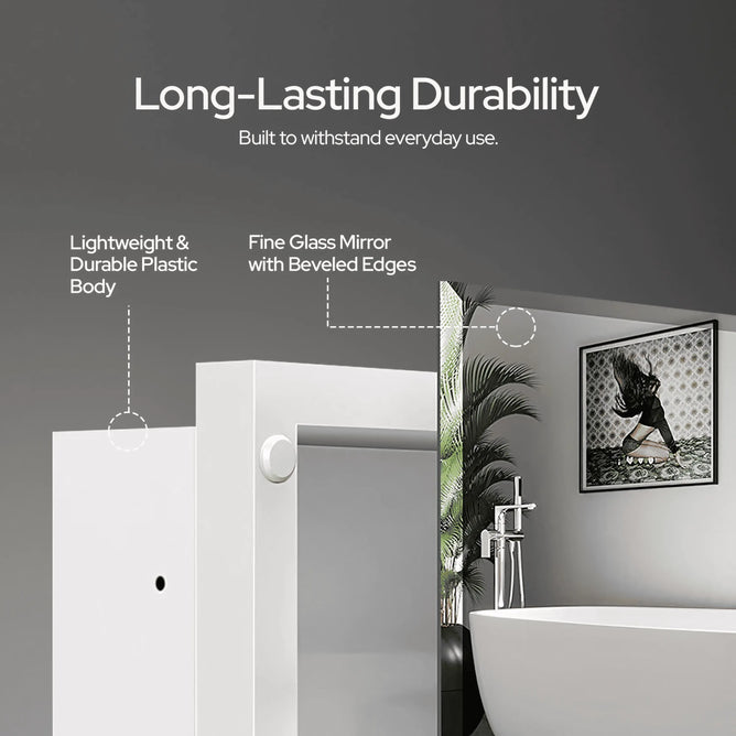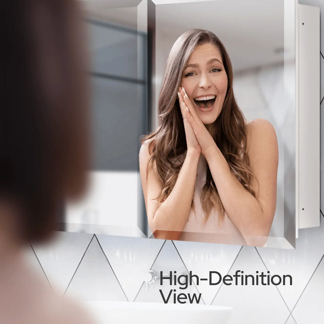 3. FULL COVERAGE MIRROR: The front door features a beveled-edge mirror, providing a sleek and modern look. This mirror ensures a full, crystal-clear reflection, perfect for grooming, makeup application, or simply checking your appearance, adding both style and practicality.