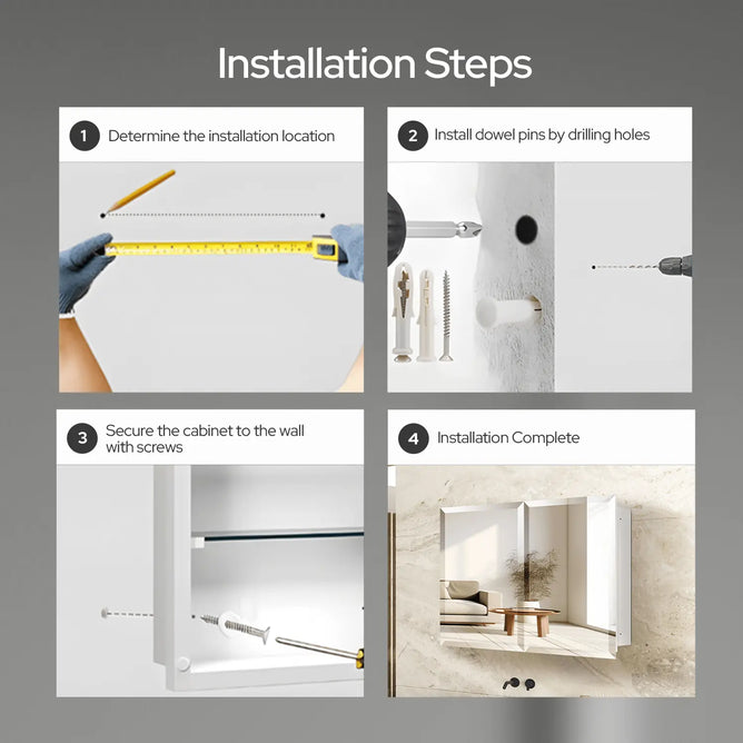 2. FLEXIBLE MOUNTING OPTIONS: The cabinet offers versatile installation, with the option to be recessed or surface-mounted on both walls and tile surfaces. The included measurements ensure a perfect fit for your space, offering convenience and adaptability for your installation needs.