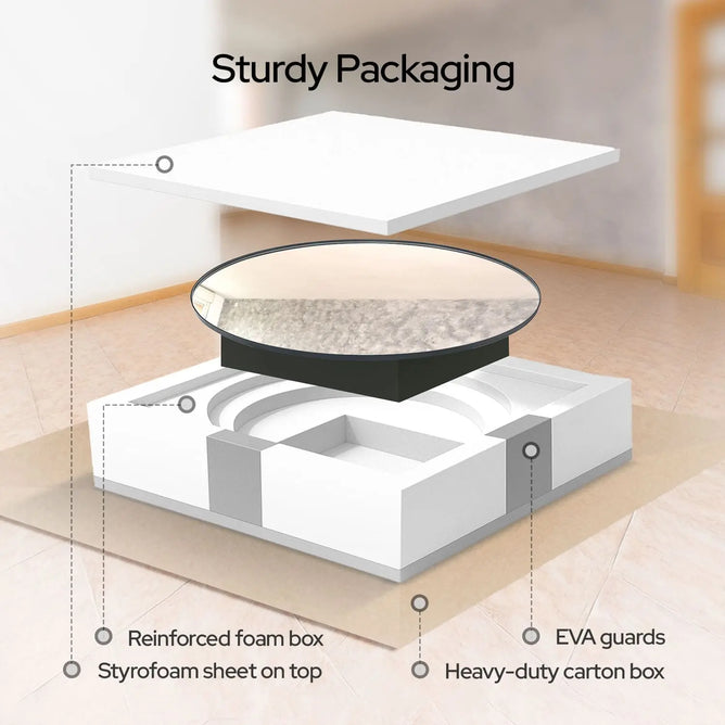 The delivery took ages to arrive, so it was little annoying. but the packaging was secure and mirror was great